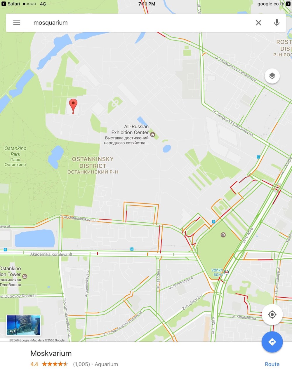 Moskvarium (http://www.moskvarium.ru/en/) สถานที่ดูปลาแห่งท้องทะเลเหนือ เป็นอควาเรียม ขนาดใหญ่ ตั้งอยู่ในเมืองมอสโก ใกล้กับสถานีรถไฟใต้ดิน VDNKh สายสีส้ม นอกจากนั้น ไม่ไกลกันยังมีพิพิธภัณฑ์อวกาศ (Moscow space museum) http://www.kosmo-museum.ru/?locale=en เหมาะสำหรับเด็กๆ ใครๆ อยากพาลูกๆ หลานๆ ไปสร้างจินตนาการให้กับพวกเค้า แอดมินแนะนำ เพราะเป็นสถานที่เรียนรู้อันเป็นอย่างดีที่จะทำให้น้องๆ หนูๆ เพลิดเพลินไปกับท้องทะเล และการศึกษาเทคโนโลยีอวกาศ ได้ความรู้ไปทั้งเด็กๆ และผู้ใหญ่ ถือเป็นสถานที่ท่องเที่ยวที่น่าสนใจไม่น้อยเลยทีเดียว