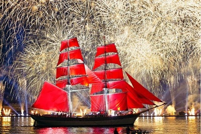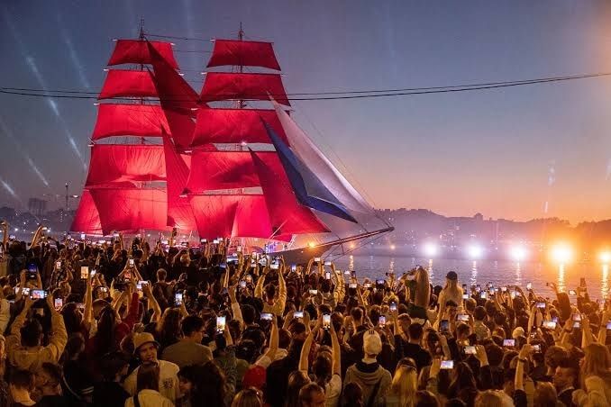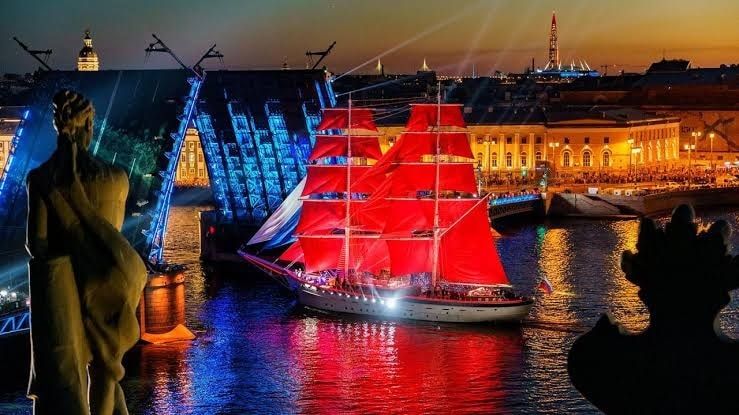 Scalet sail เรือแดงที่ใช้ฉลองเทศกาล White night ของเมืองเซนต์ปีเตอร์สเบิร์กปีนี้จัดตรงกับวันเสาร์ที่ 28 มิถุนายน 2025 – เช้าวันอาทิตย์ที่ 29 มิถุนายน 2025 เริ่มงานเวลาประมาณ 1800 น (เข้างาน คอนเสิร์ต การแสดงต่าง เรือมาดึกๆ) แต่กว่าเรือจะออกมาก็ประมาณ 01.00 – 04.00 น.